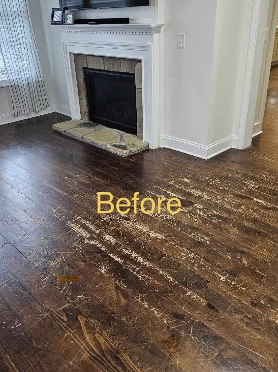 Dust-free surface prep & recoat refinishing. Pets, kids, and furniture back immediately. No waiting 3-5 days like traditional sanding.
